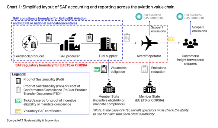 It is recommended that airlines obtain a declaration from the fuel supplier that the SAF and associated benefits ‘belongs to the purchasing airline and have not been purchased or claimed by another party in the same emissions scope’.
