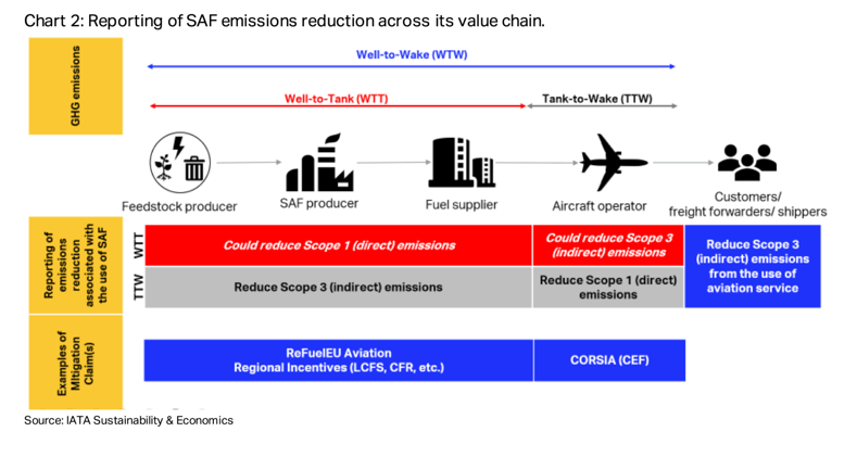 • Purchase-based emissions calculations, irrespective of chain-of-custody used and SAF uplift locations, aligning with ICAO’s CORSIA approach